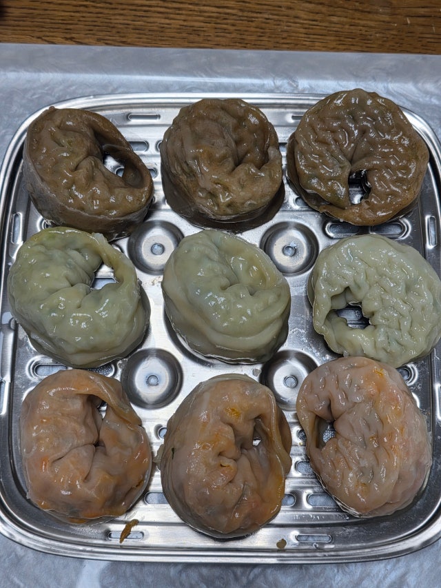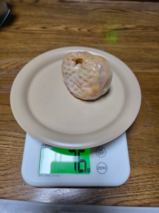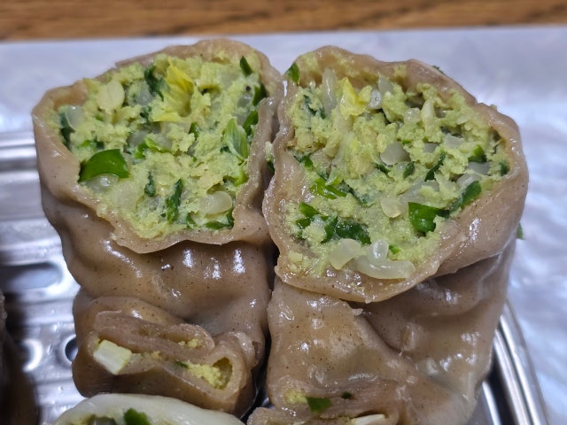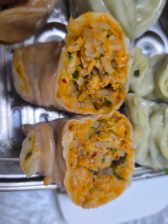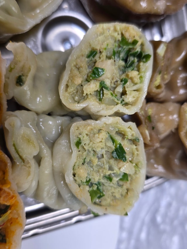 만두가 알이 크고 속도 꽉 찼어요. 찐 후 무게가 각각 70g 넘어요. 재료들이 푸짐해서 식감도 좋고 맛있어요.